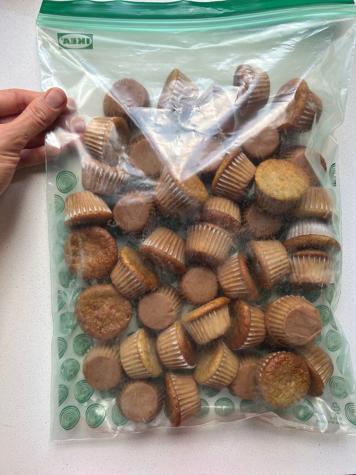 Os bolinhos são práticos porque vão direto do congelador para a lancheira. Até a hora do lanche já estão descongelados e ficam com uma textura excelente!